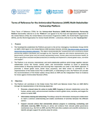 These Terms of Reference (TORs) for the Antimicrobial Resistance (AMR) Multi-Stakeholder Partnership Platform (hereinafter referred to as the “Platform”)...
