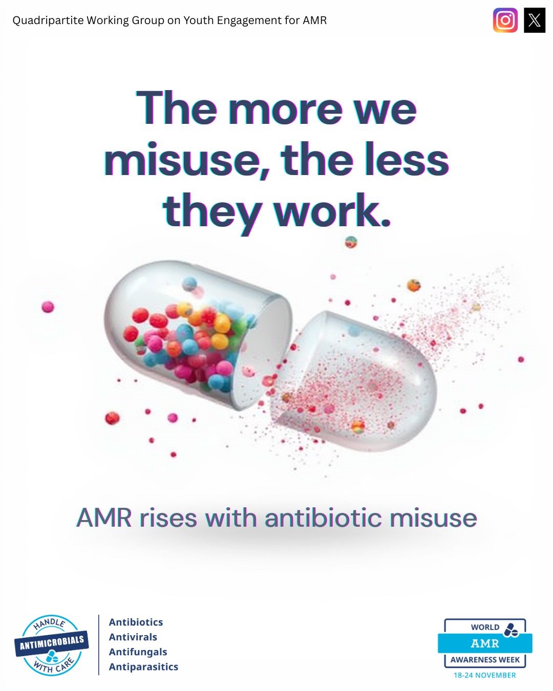 The Quadripartite Working Group on Youth engagement for AMR, which was launched in October 2023, has 14 members from 14 different countries and represents 14 youth-led or youth-serving organizations.